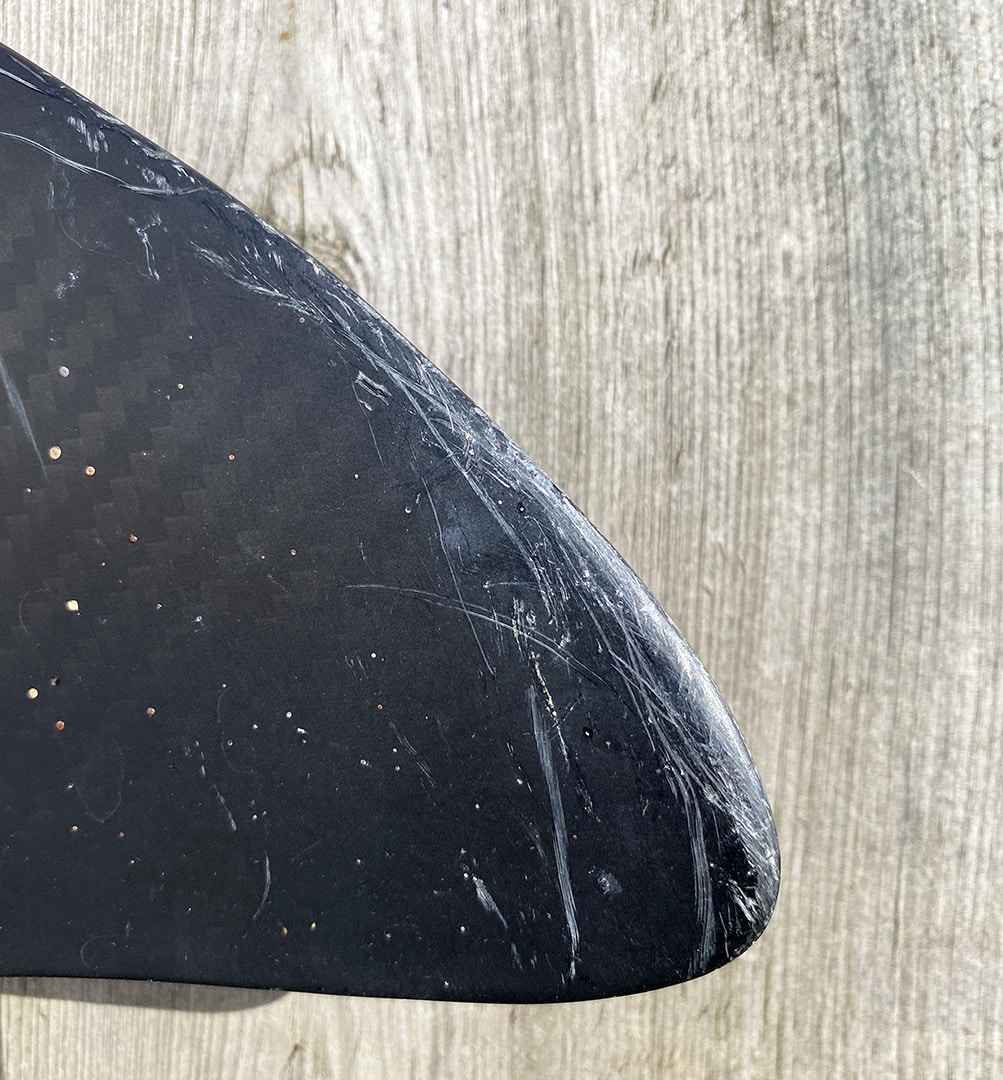 Toute rayure sur une ailette avant ou arrière freine et ralentit votre foil. L’écoulement de l’eau est perturbé et gêne plus ou moins votre vitesse et/ou la stabilité. Bien entendu, si vous naviguez à 15 nds de vitesse, vous ne sentirez pas de différence. Plus votre vitesse sera élevée et plus vous sentirez ces rayures.