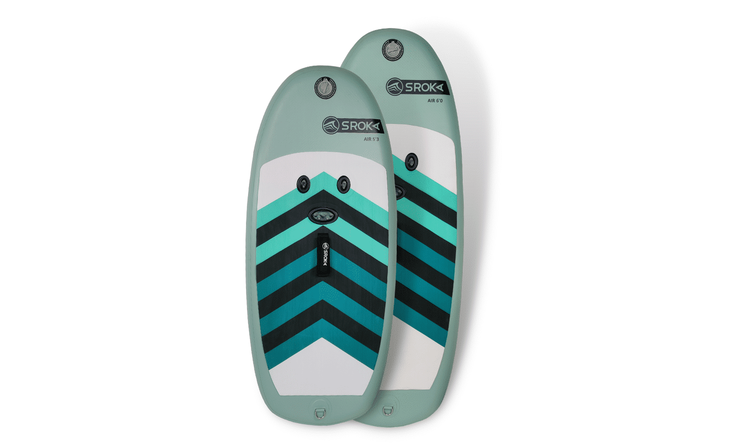 La planche gonflable Sroka Air V1 : La planche gonflable Sroka Air V1 est une planche de foil conçue pour le wingfoil. Elle est disponible en deux tailles (5’3 ou 6’ (6’4 épuisée)) adaptées à votre gabarit et à votre niveau. Elle est dotée d’une plaque en carbone sur le dessous, recouverte d’une couche de PVC (3 couches sur les rails) haut de gamme qui lui confère une rigidité et une durabilité sans pareil. Elle a également un boitier double rail US standard qui permet de fixer solidement le foil. La planche gonflable Sroka Air V1 est facile à transporter, à gonfler (5min) et à dégonfler (30 secondes). Elle est livrée avec un sac tout-en-un qui contient également la pompe manuelle, le leash de planche. Le pack complet passe dans le sac à dos à roulette.