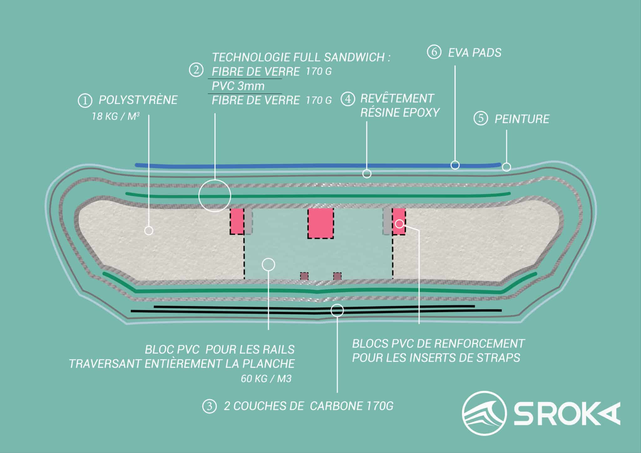 - Une planche de foil Sky Rider de nouvelle génération (fibre de verre, full sandwich pont & carène)