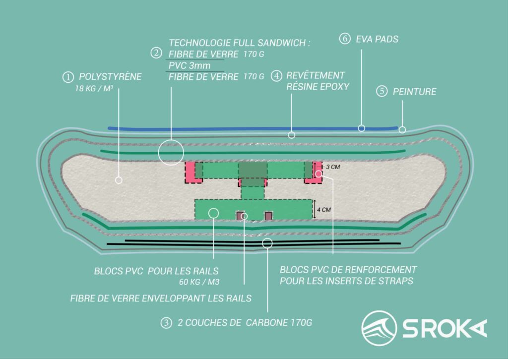 La Sky Rider 6’3 est construite en full sandwich PVC sous la carène et le pads, combinant fibre de verre et fibre de carbone pour offrir une rigidité pour être plus efficace dans vos courbes. Cette construction garantit une excellente rigidité de planche pour progresser plus rapidement.