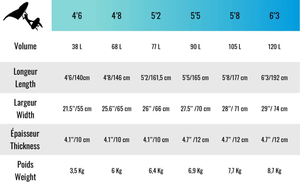 La planche Sky Rider 4’8 ou 5’2 wingfoil est parfaite pour s’amuser en freestyle, en race ou dans les vagues. Avec une bonne largeur de planche, la stabilité est au rendez-vous surtout au départ. Ces planches super polyvalentes sont destinées aux riders intermédiaires et expérimentés pour passer au niveau supérieur.